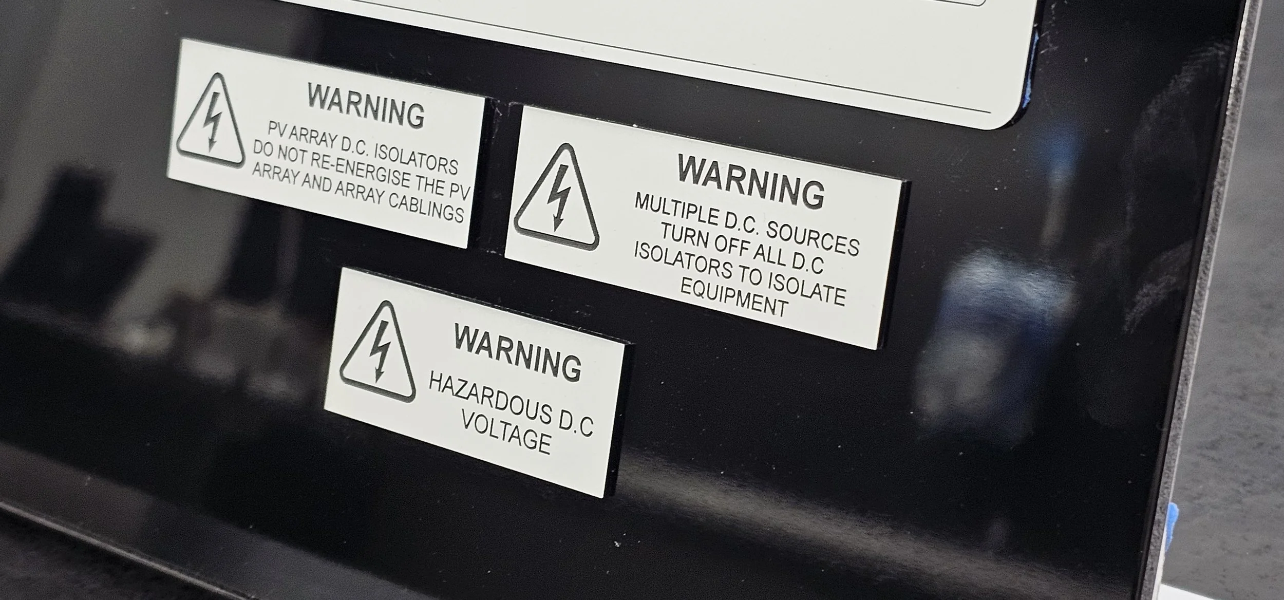 Durable, machine-etched custom labels for cables and equipment, offering enhanced organization and traceability. Available in various materials and sizes, tailored to meet specific project needs.